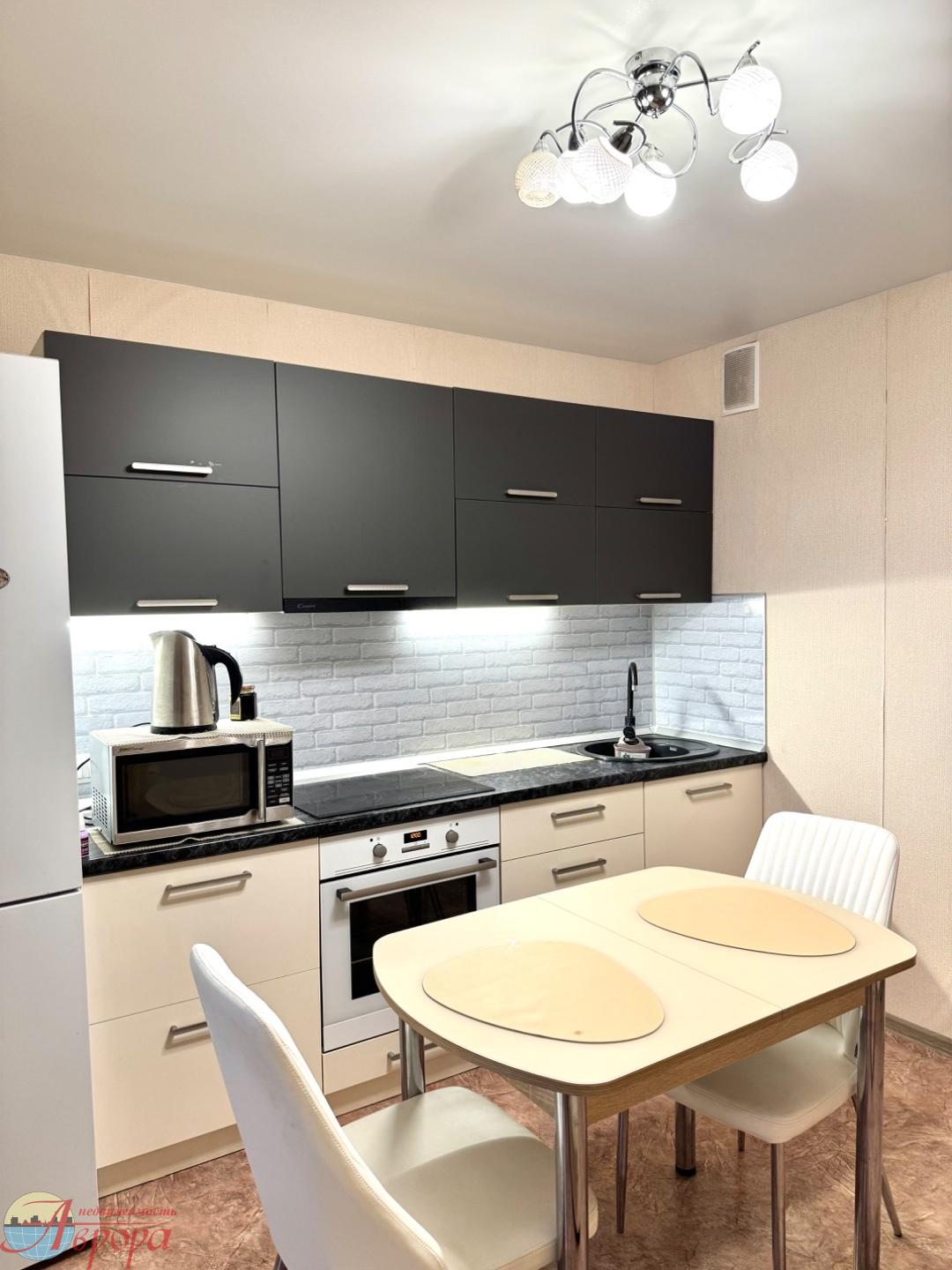 В квартире остаётся: новый кухонный гарнитур с качественной встроенной техникой ( духовой шкаф, варочная панель), холодильник, вместительный шкаф в холле.