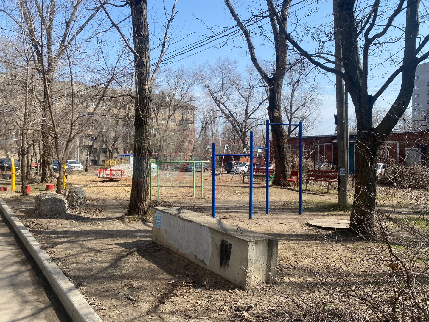 Тихий зеленый двор с детской площадкой. Всегда есть место для машины. Рядом остановка общественного транспорта «Космонавтов» — удобная транспортная доступность по городу.